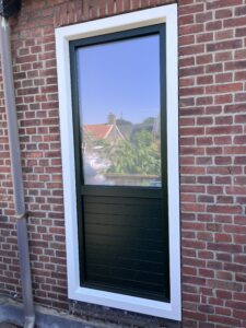 In Dongen hebben wij een oud houten kozijn vervangen door een nieuw kunststof kozijn. Het bestaande kozijn met een blind paneel aan de bovenzijde is