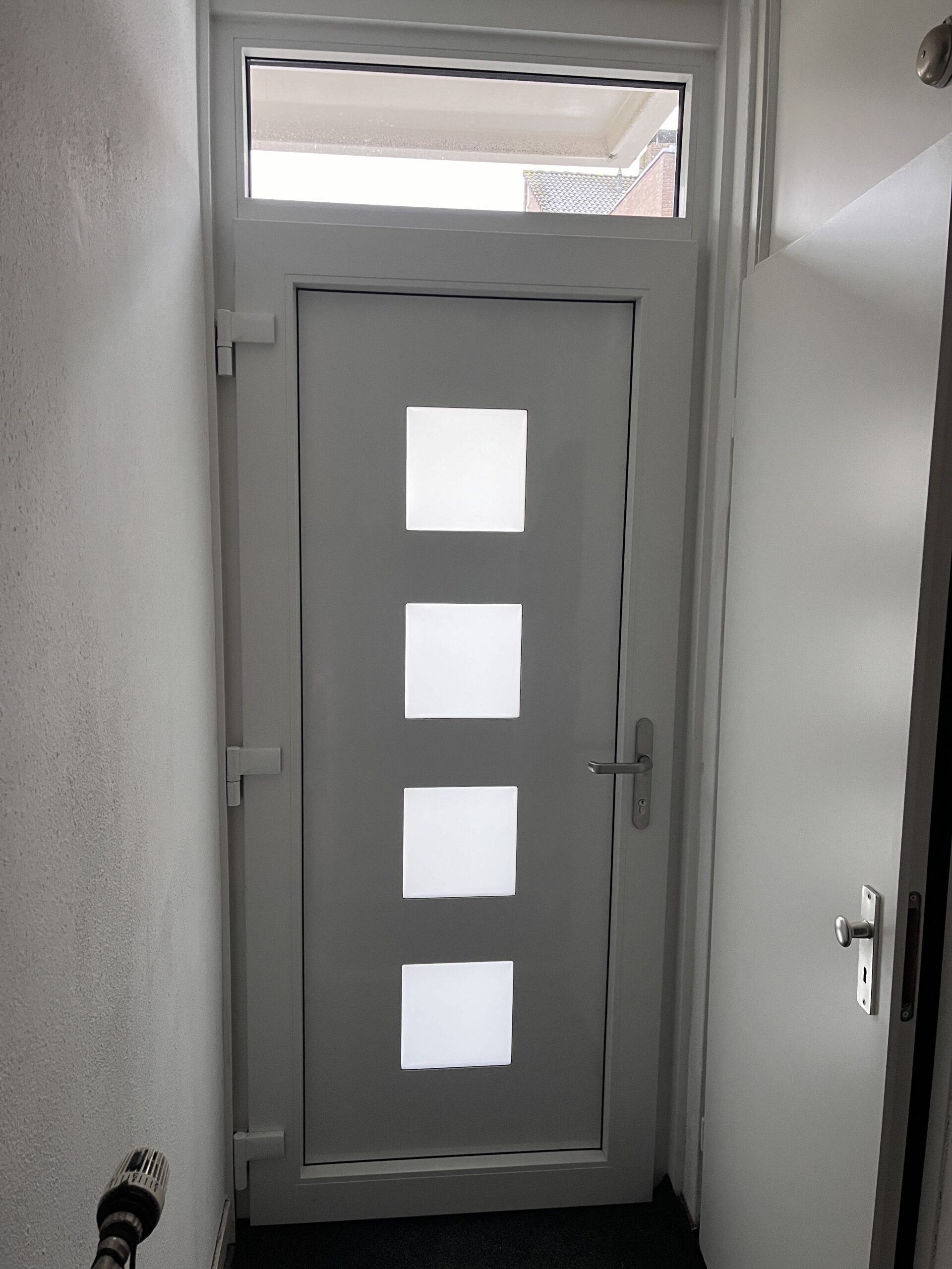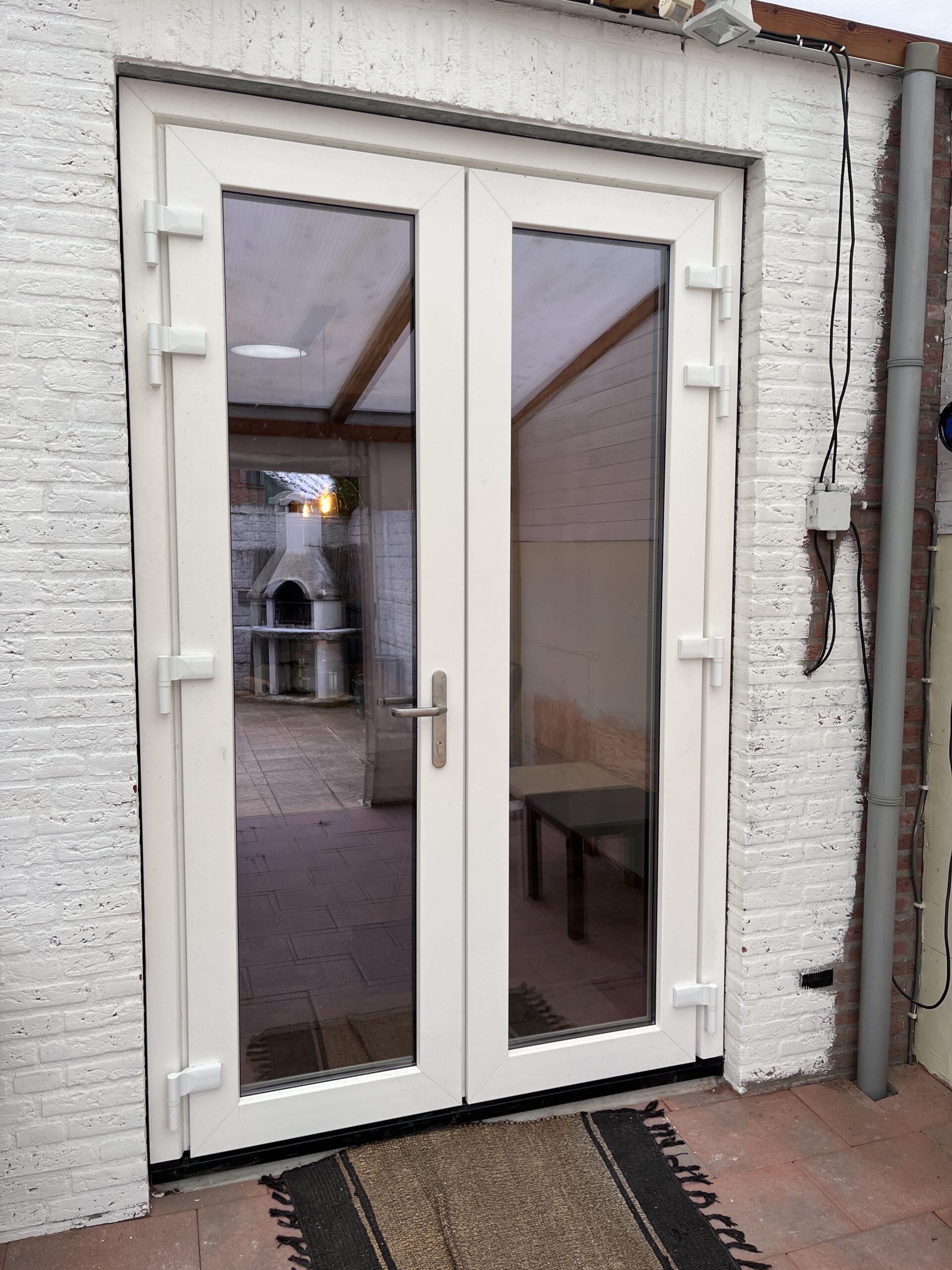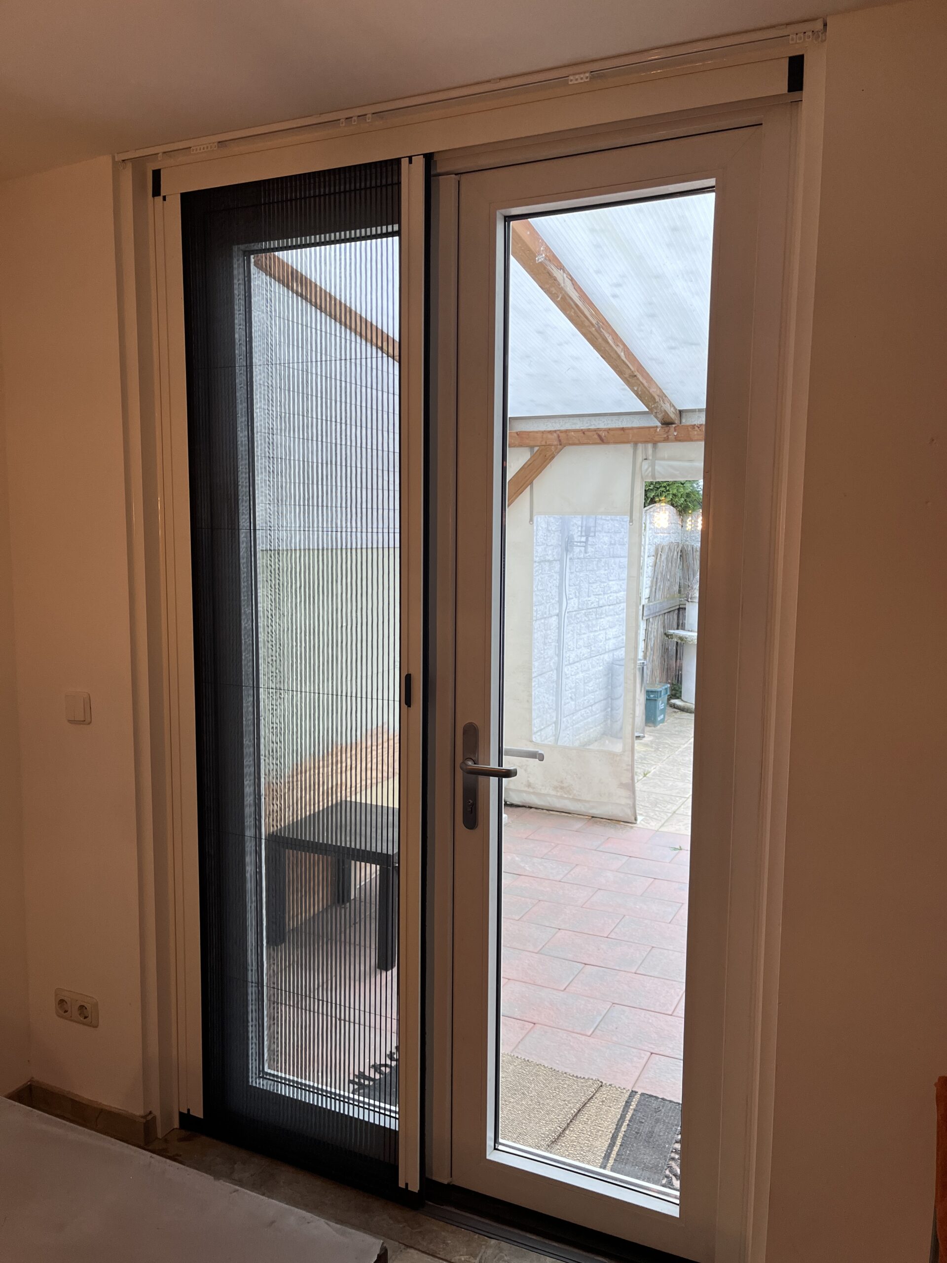 Aan de voorgevel hebben we de twee voorramen en de voordeur vernieuwd, wat niet alleen de uitstraling van de woning verbeterde, maar ook de energie-efficiëntie verhoogde. Aan de achterzijde hebben we een verouderde schuifpui vervangen door twee prachtige hoge tuindeuren. Een belangrijk aspect van dit project was de installatie van een elegante plissé hordeur, waarmee we niet alleen functionaliteit toevoegen maar ook een effectieve barrière creëren tegen vliegen, muggen en ander ongedierte.