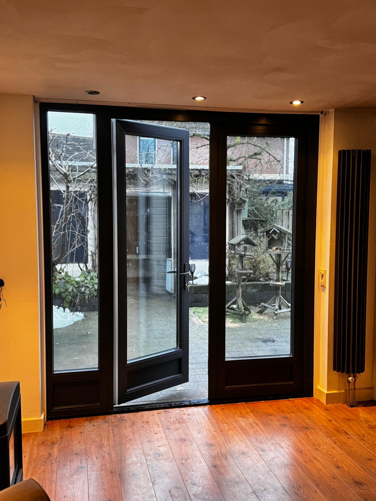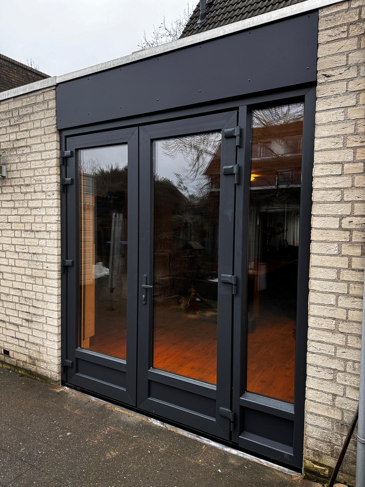 In Wijk en Aalburg hebben wij het bestaande houten tuindeurenkozijn vervangen door een kunststof tuindeuren kozijn. De nieuwe tuindeuren zijn uitgevoerd in antraciet RAL 7016 met houtstructuur, wat zorgt voor een moderne uitstraling.