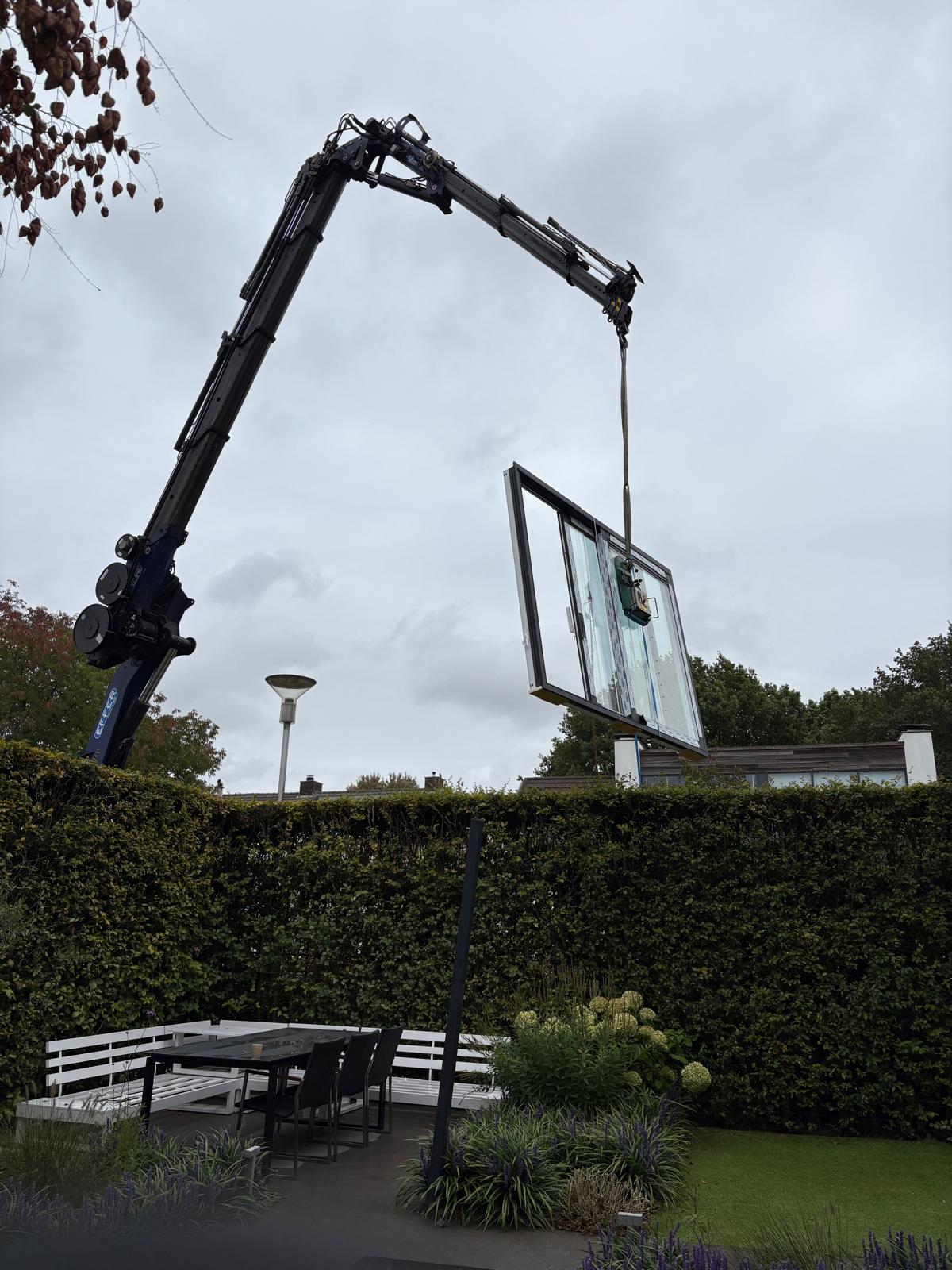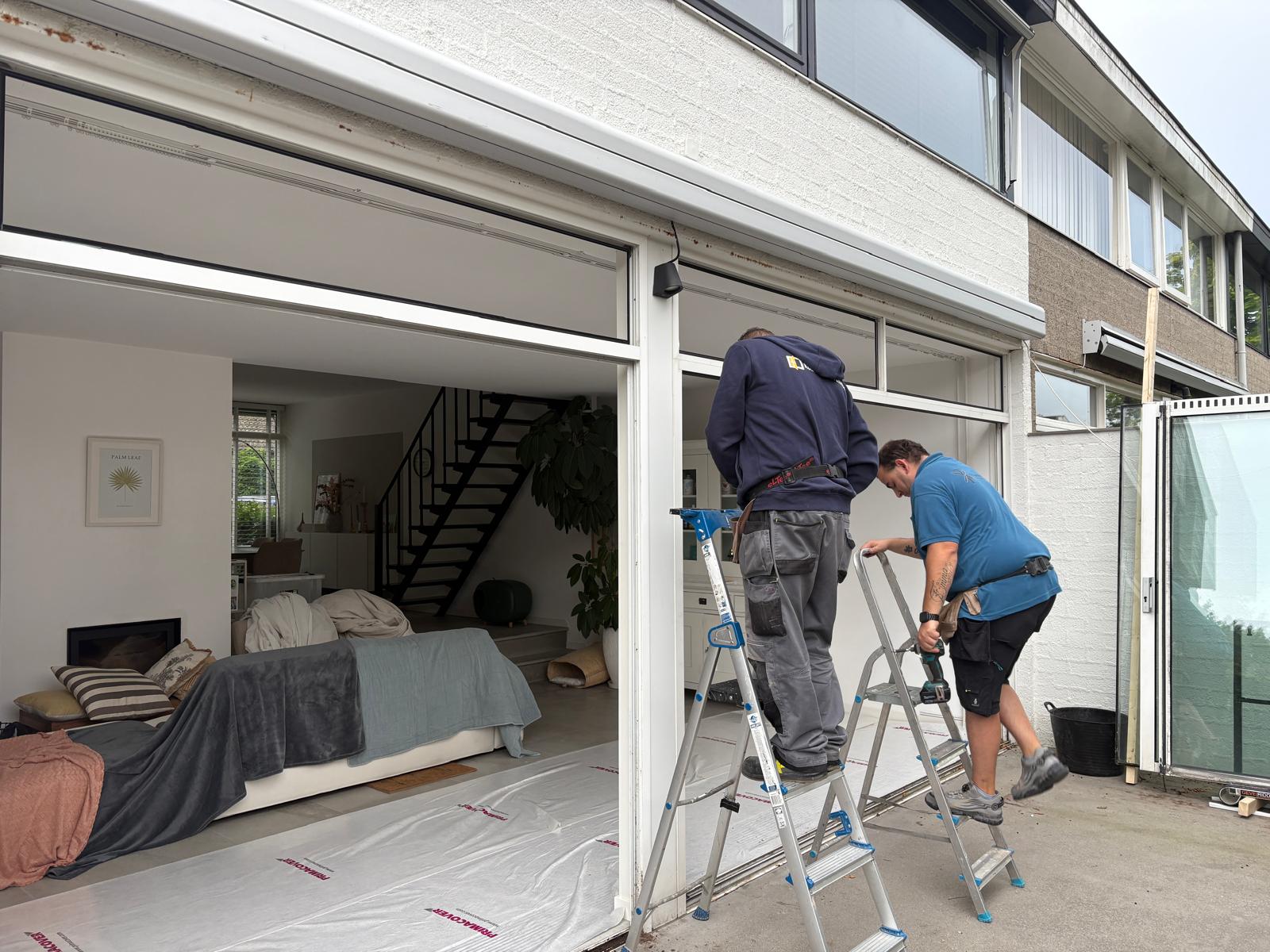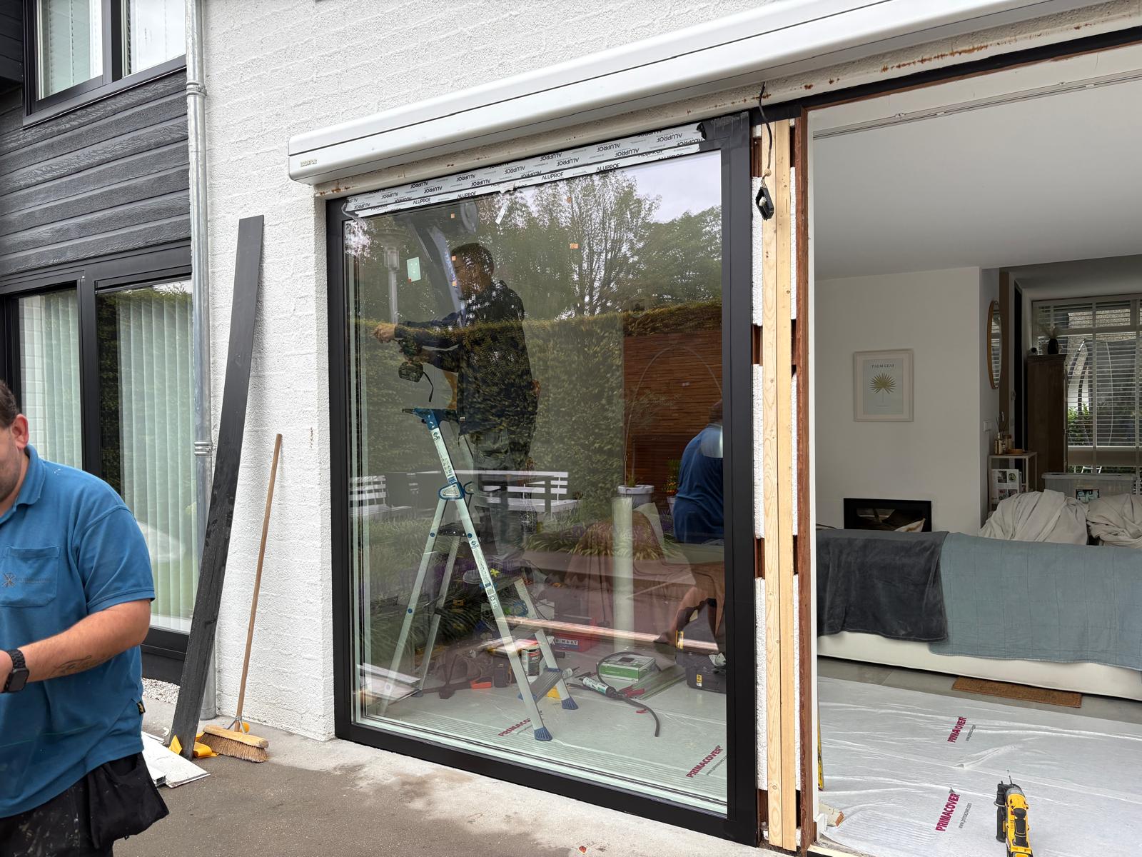 Op de begane grond hebben we een verouderde schuifpui met vast glas vervangen door een stijlvolle aluminium hefschuifpui in combinatie met een vastglas kozijn. De gekozen kleur RAL 9005 (gitzwart) sluit perfect aan bij de moderne woonstijl en zorgt voor een luxe en tijdloze uitstraling.